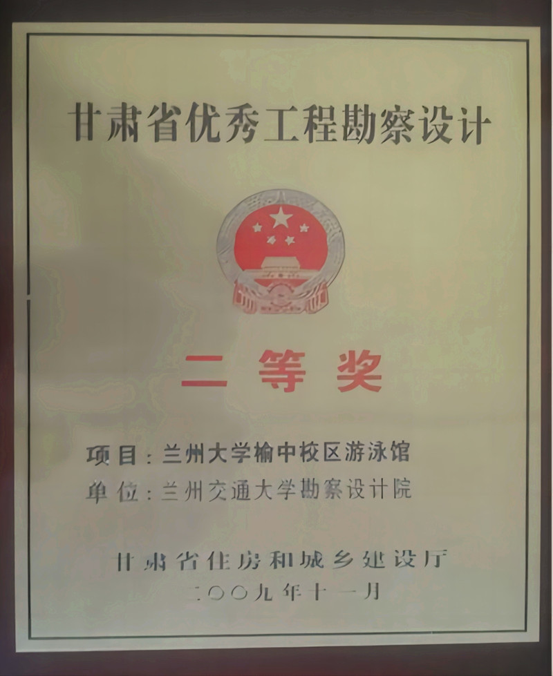 2009年甘肅省優(yōu)秀工程勘察設(shè)計(jì)二等獎(jiǎng)