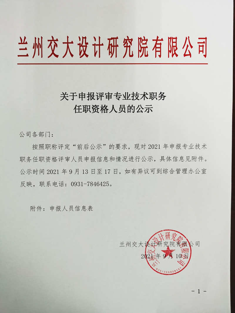 關于申報評審專業(yè)技術職務任職資格人員的公示